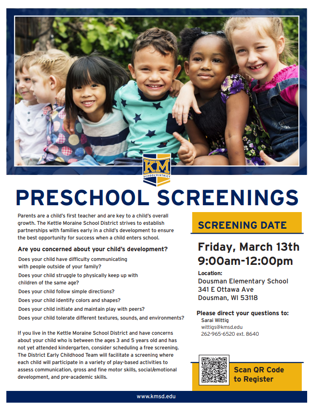 Events/opportunities listed on our Community Flyers page are not endorsed by the Kettle Moraine School District. They have been approved for electronic sharing. Visit https://www.kmsd.edu/page/km-community to see the full list of current flyers.
