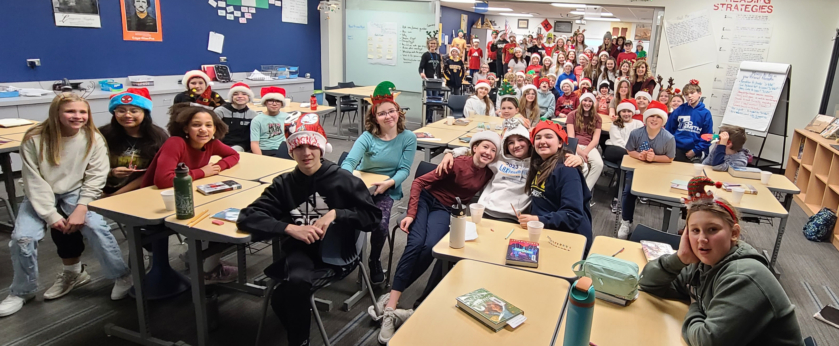 "Ms. Cuzman's seventh grade math classes recently participated in an ALEKS Grinch competition before winter break. In addition to their academic challenge, students were encouraged to bring in donation items for the Waukesha County Food Pantry.