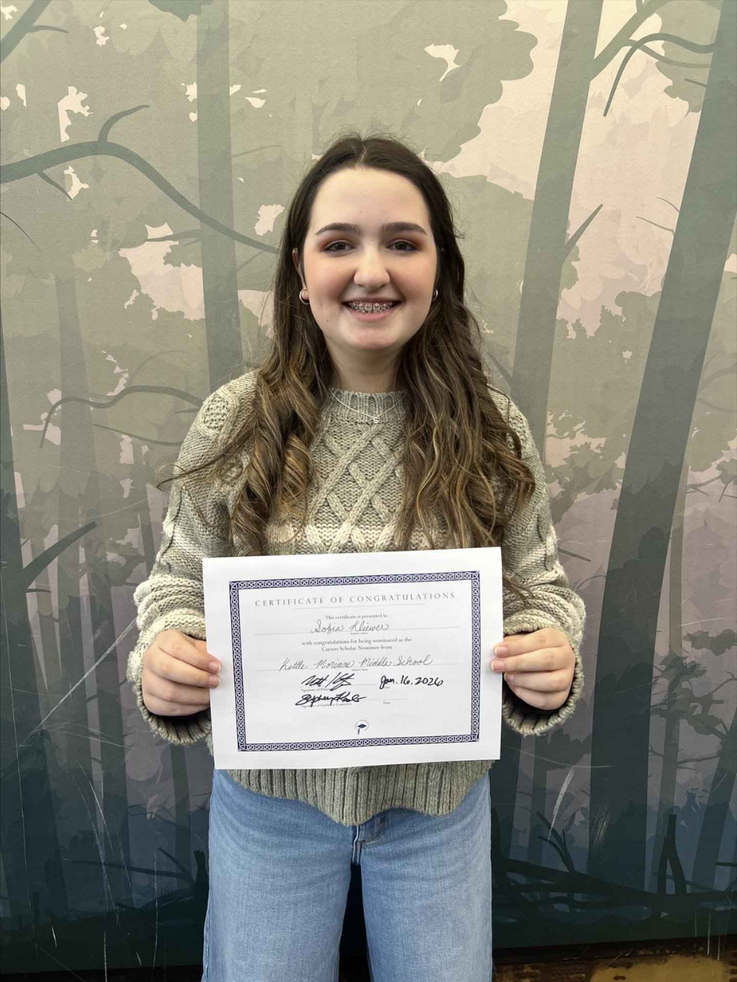 KMMS is proud to name 8th grader, Sofia K., as our nominee for the 2026 Carson Scholars Award. The purpose of the Carson Scholars Program is to recognize and reward outstanding students in the United States who exemplify academic excellence and humanitarian qualities. Sofia’s achievements include exemplary grades and attendance, as well as active involvement in our Student Senate and Laser Ladies of STEM. Possibly Sofia’s most unique achievement is that she created and leads our school’s Book Club, which has been a way for Sofia to give back to the school while honing her leadership skills. Congratulations, Sofia!